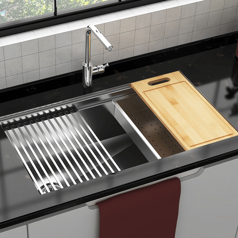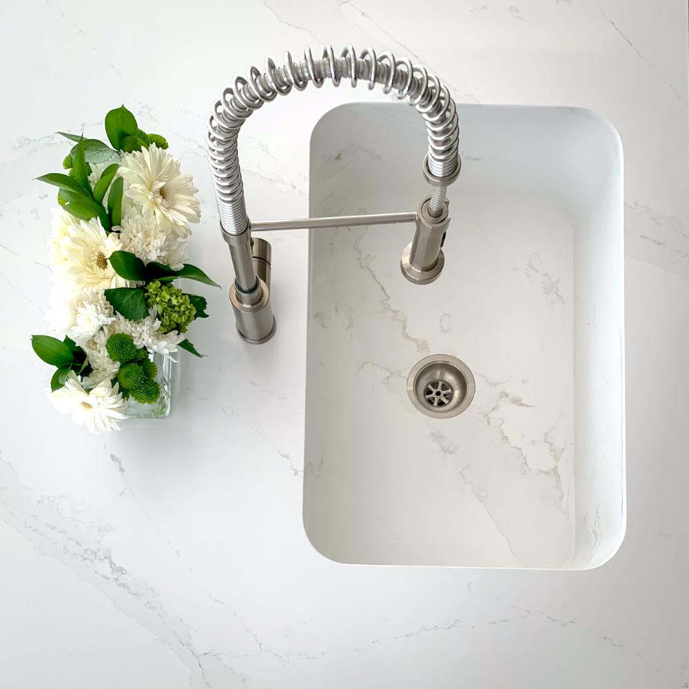 For a sleek, modern touch with the ultimate seamless transition, we offer TopZero sinks. These innovative stainless steel sinks feature a unique, zero-edge design that creates a perfectly smooth transition from countertop to sink. By eliminating the visible lip or rim, TopZero sinks provide a clean, streamlined look that is both highly functional and visually striking. The focus remains on the beautiful slab of material, while the sink becomes a sleek, understated element.