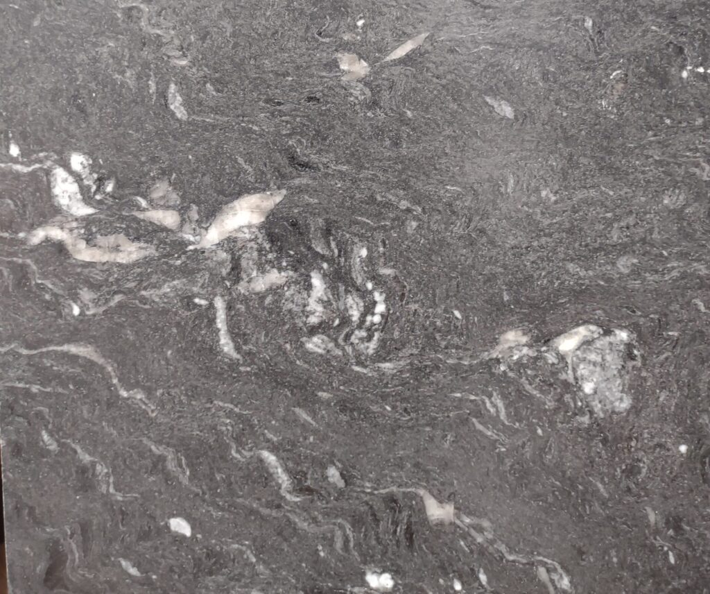 Cheyenne granite, quarried in Brazil, fascinates us with its penetrating black color enlivened by its irregular veining of white and gray that seems to dance across the stone – a movement you can literally feel with your fingertips. This stone is available in 3cm thickness and a leathered finish.