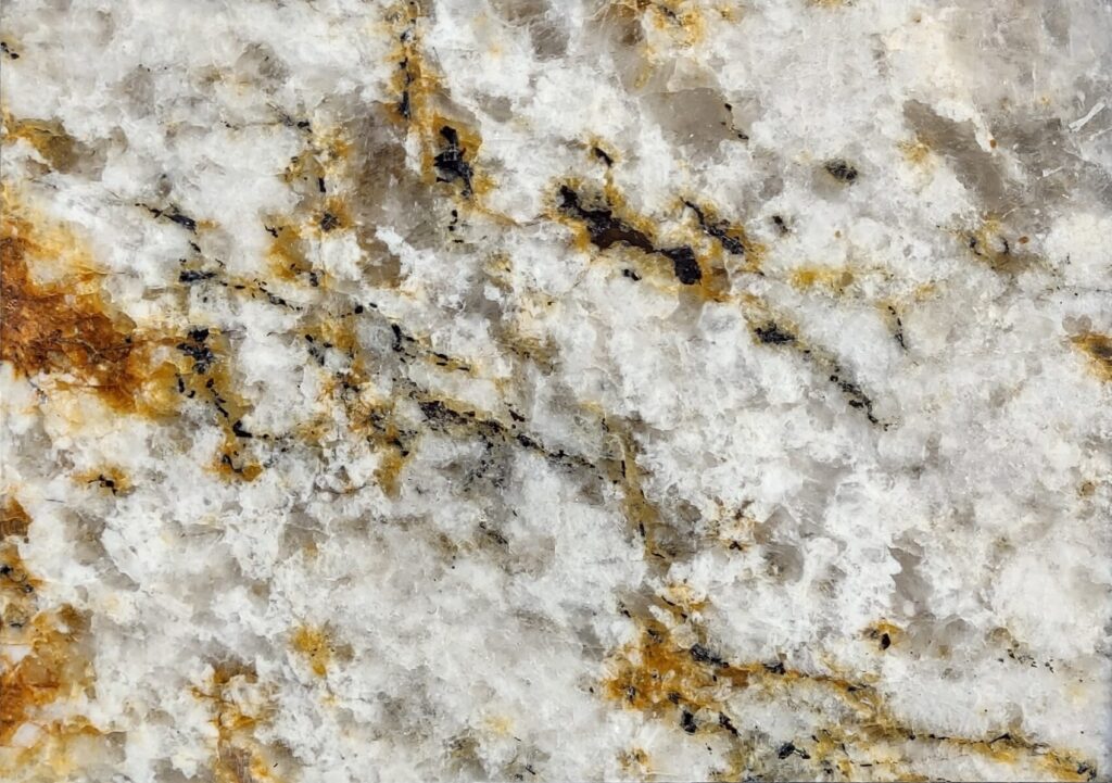 Istanbul granite, quarried in Brazil, offers beige, brown, and golden hues with striking veining and softer accents throughout. This stone is available in 3cm thickness and a polished finish.