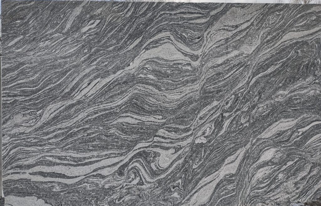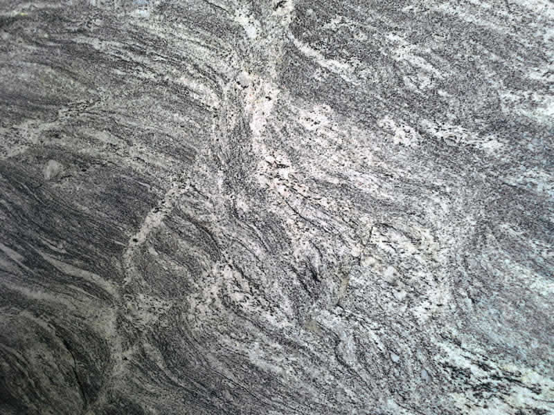 Scottish Mist granite, quarried in India, creates movement with its dark and light grays highlighted by warmer tones and hints of green. This stone is available in 3cm thickness and a polished finish.