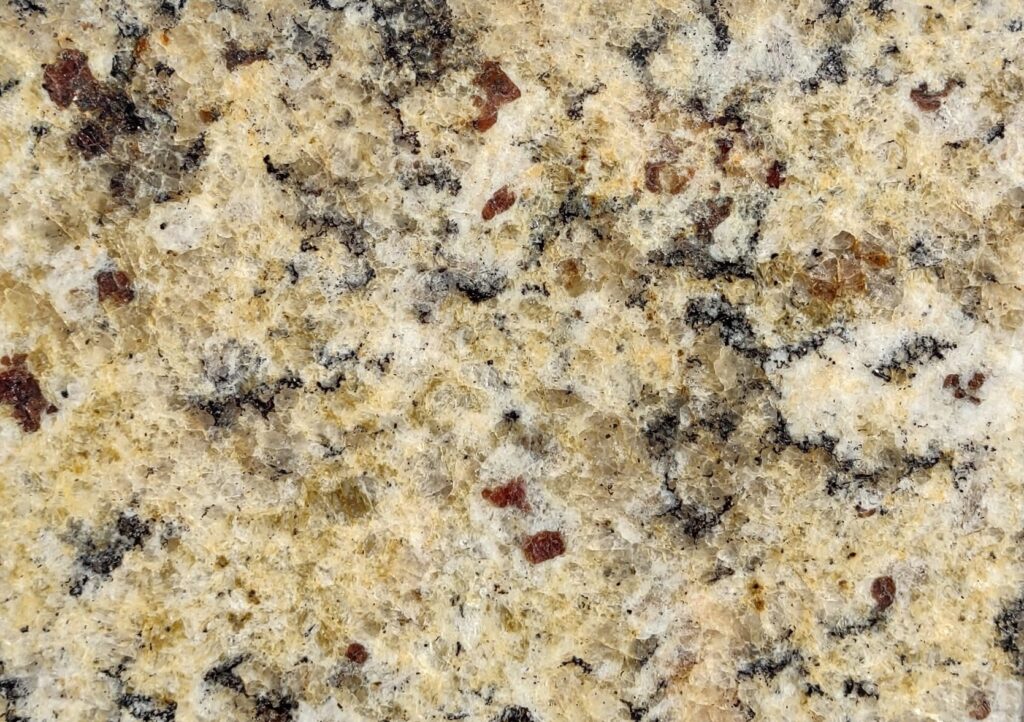 St. Cecilia granite, quarried in Brazil, features beautiful beige background with burgundy, gold and dark gray veins. This stone is available in 3cm thickness and a polished finish.