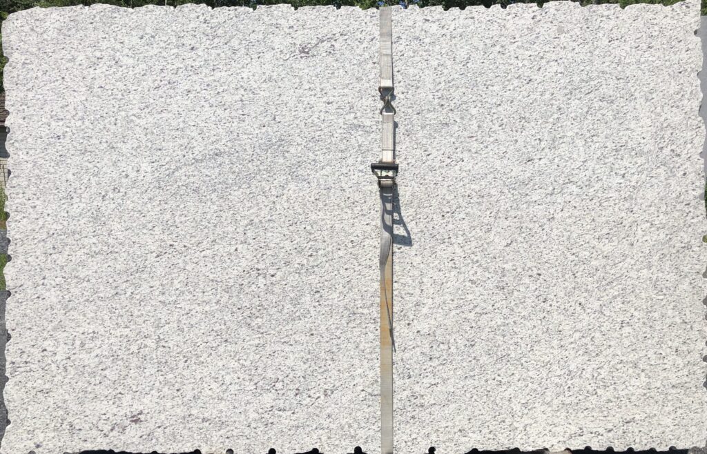 White Ornamental granite, quarried in Brazil, features creamy background with scattered beige, charcoal, and garnet accents. This stone is available in 3cm thickness and a polished finish.