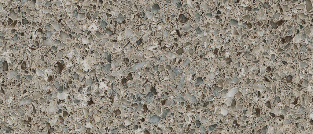 Alpine Quartz is made by Q Quartz. Silver hued, pewter, and gunmetal fragments are suspended in heather grey to create a sleek and sophisticated look. This quartz is available in 3cm thickness and a polished finish. Standard slab size is 64″x127″.
