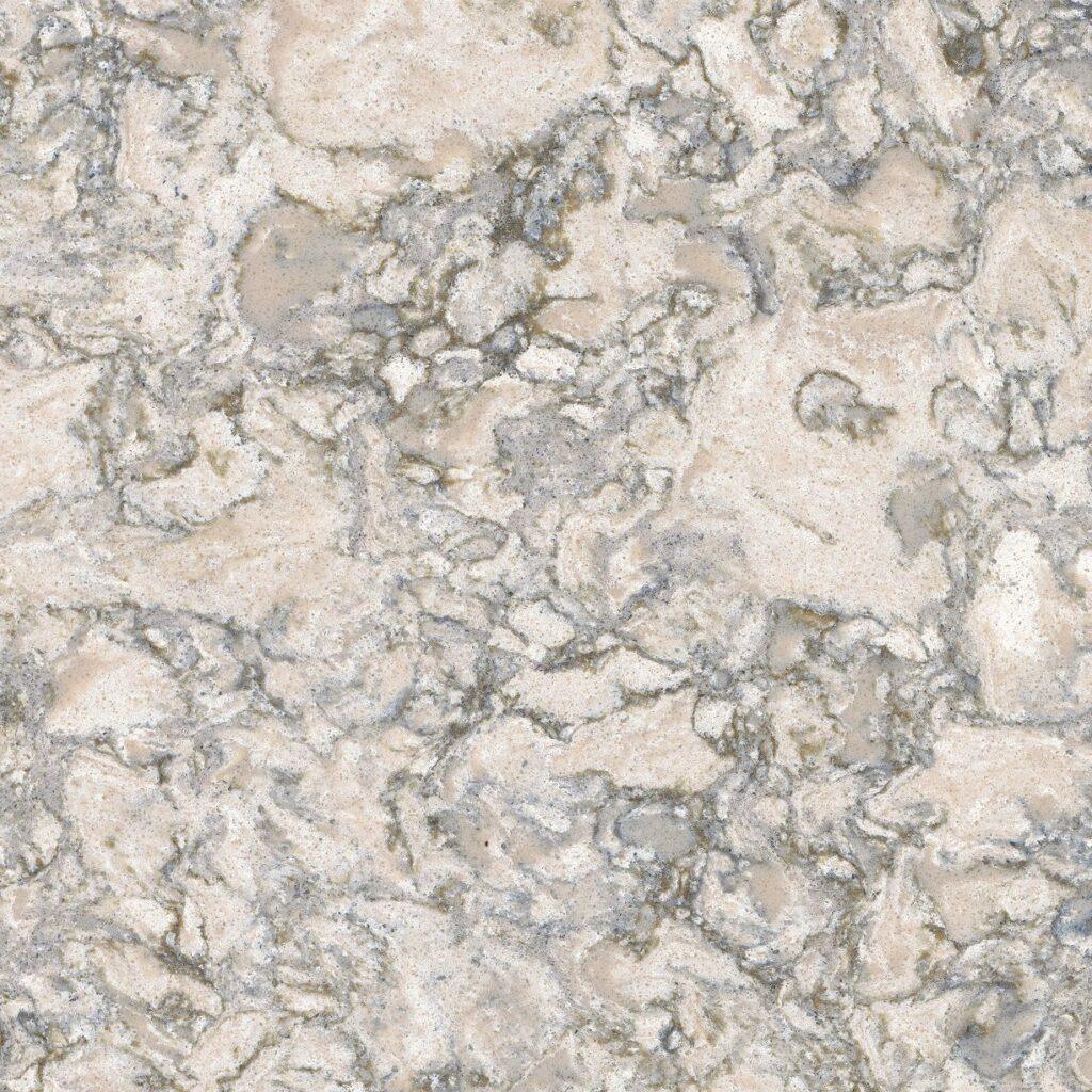 Berwyn Quartz is made by Cambria Quartz in the USA. Berwyn convenes swirls of whites, ivories, and creams with subtle gray veins and hints of gold and silver radiance throughout. This quartz is available in 3cm thickness and a polished finish. Standard slab size is 63″x130″.