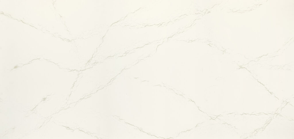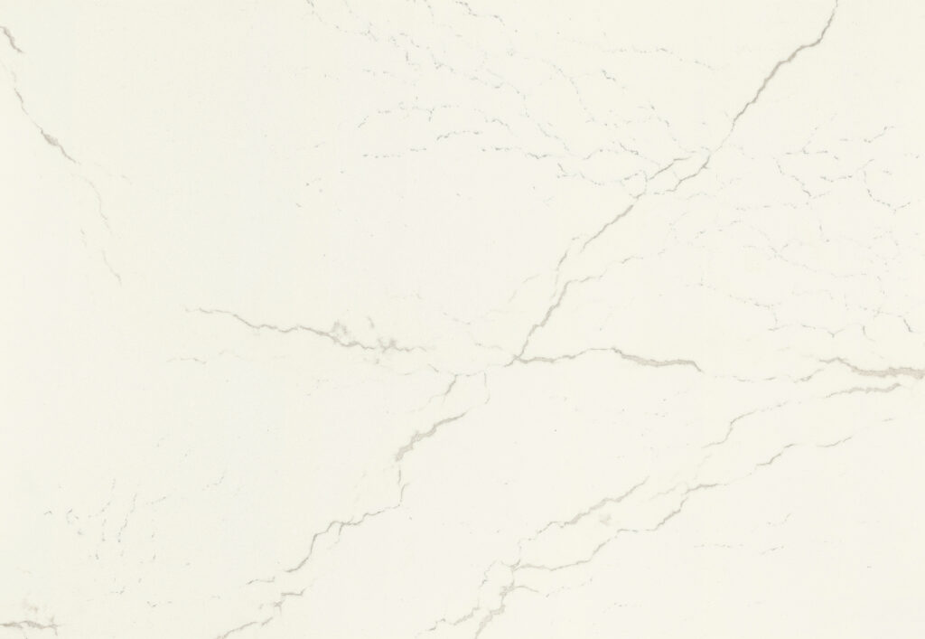 Inverness Frost Quartz is made by Cambria Quartz in the USA. Sophisticated off-white veins fracture a cool white canvas with lively intensity. Debossing throughout the veining contrasts with the smoothness of the background, giving the design a gently textured composition and beautifully organic quality. This quartz is available in 3cm thickness and a matte finish. Standard slab size is 63″x130″.