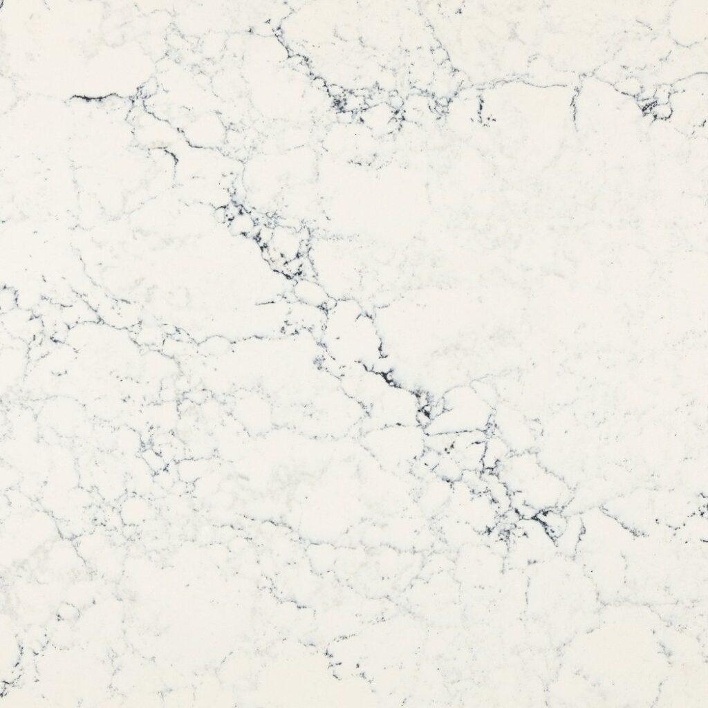 Sutherland Quartz is made by Cambria Quartz in the USA. Quiet and dignified, Sutherland offers a soft alabaster foundation crossed with dark and light gray veins and capillaries that braid and flow across this tranquil design. This quartz is available in 3cm thickness and a polished finish. Standard slab size is 63″x130″.