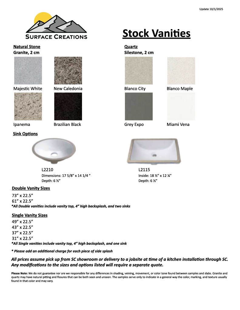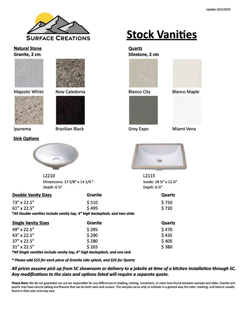 Please note that Stock Vanities are ONLY available in the sizes and options listed. Any modifications or requests for custom dimensions will require a separate quote.